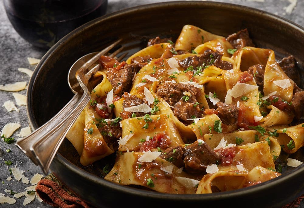 Pâtes assortis au boeuf effiloché et Burrata à la truffe